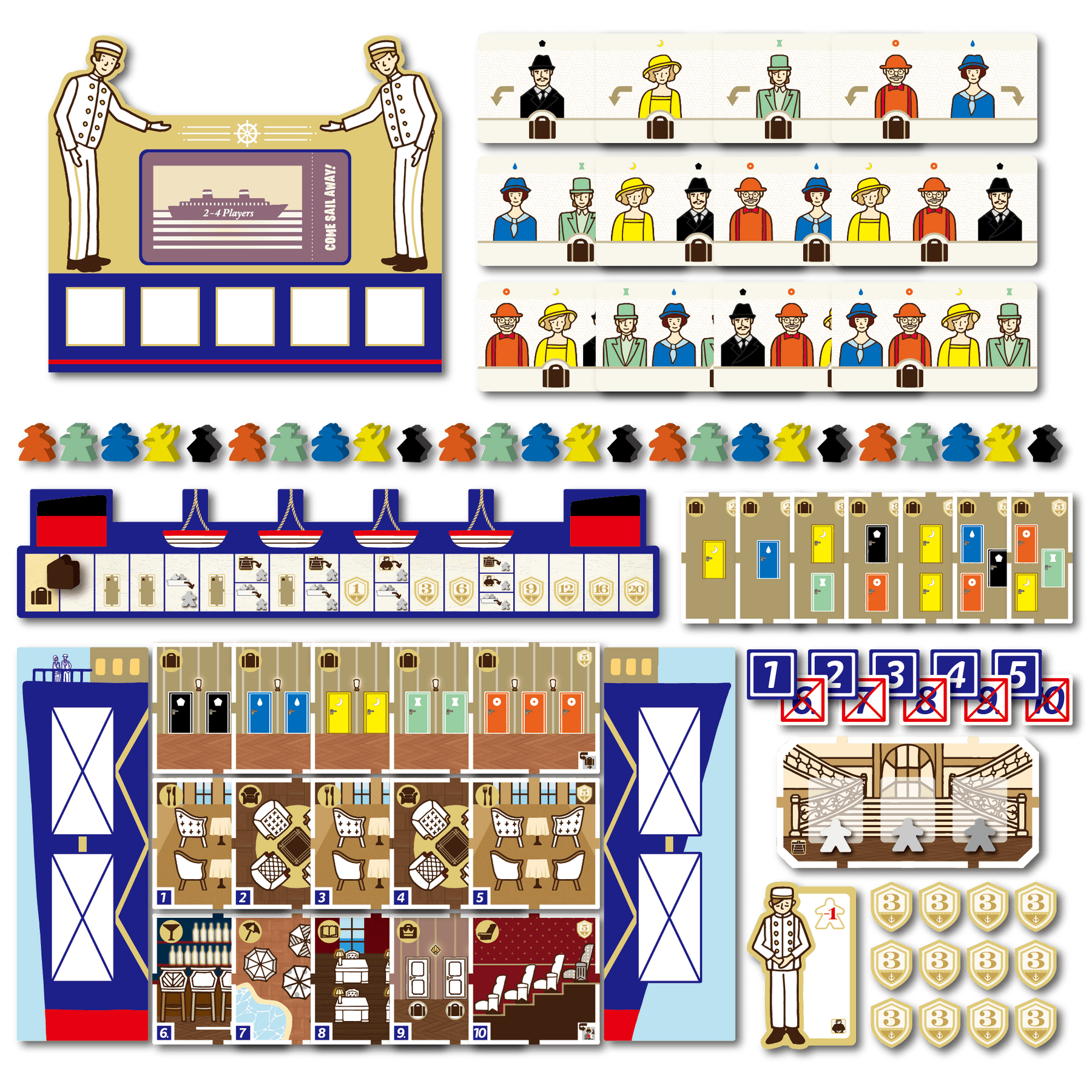 Come Sail Away! er et brætspil for 1-4 spillere, hvor I konkurrerer om at få passagerer ombord på jeres luksusliner og bringe dem til deres yndlingskahytter og -faciliteter. Spillerne kan nyde et lækkert, tankevækkende og flot illustreret spil, der er nemt at lære, men altid udfordrende.