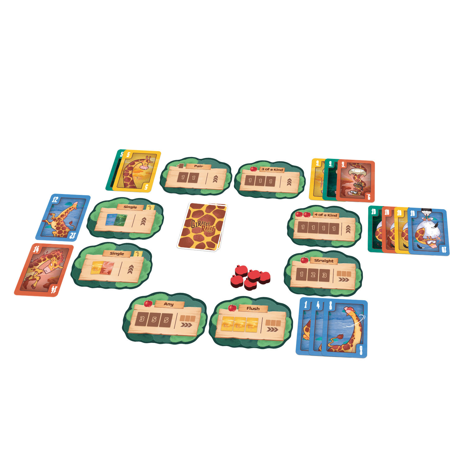 Spil enten et eller flere kort til et træ, så længe dit udspil er højere end det, der allerede er der, og få en belønning, eller du kan spille et æble og springe din tur over.