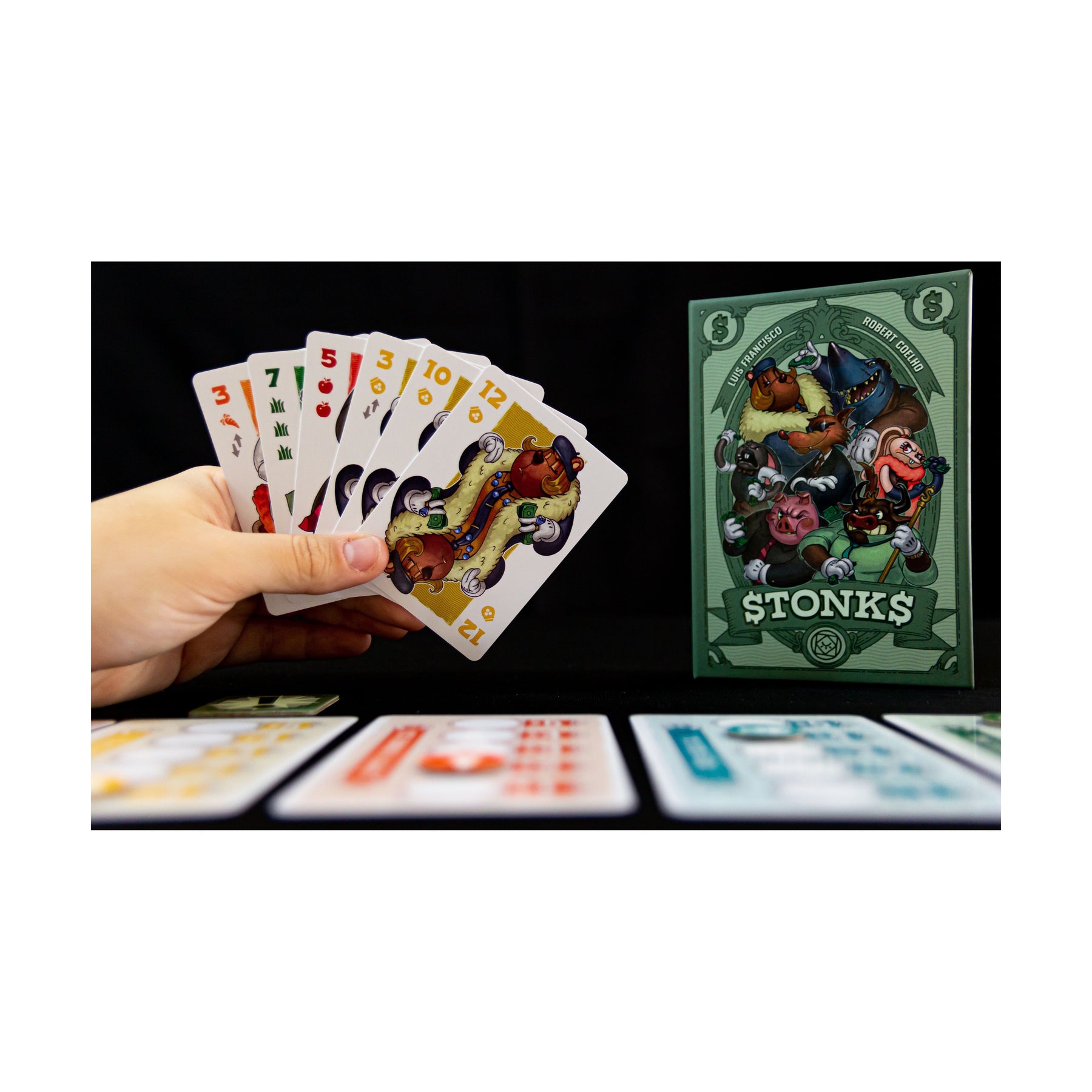 Stonks er et spil om at tage stik og aktiemarked. En af spillerne fører stikket ved at spille et kort, og alle skal følge trop. Den, der spillede det højeste kort, vinder stikket og vælger et af de spillede kort at lægge i pungen. Alle kort har aktier, som giver sejrspoint i henhold til virksomhedernes markedsværdi. Nogle kort giver, når de bruges, spilleren mulighed for at ændre en virksomheds aktiekurs, enten til sin egen fordel eller for at ødelægge modstanderens drømme. Når alle kort er brugt, er spilleren med flest sejrspoint vinderen.