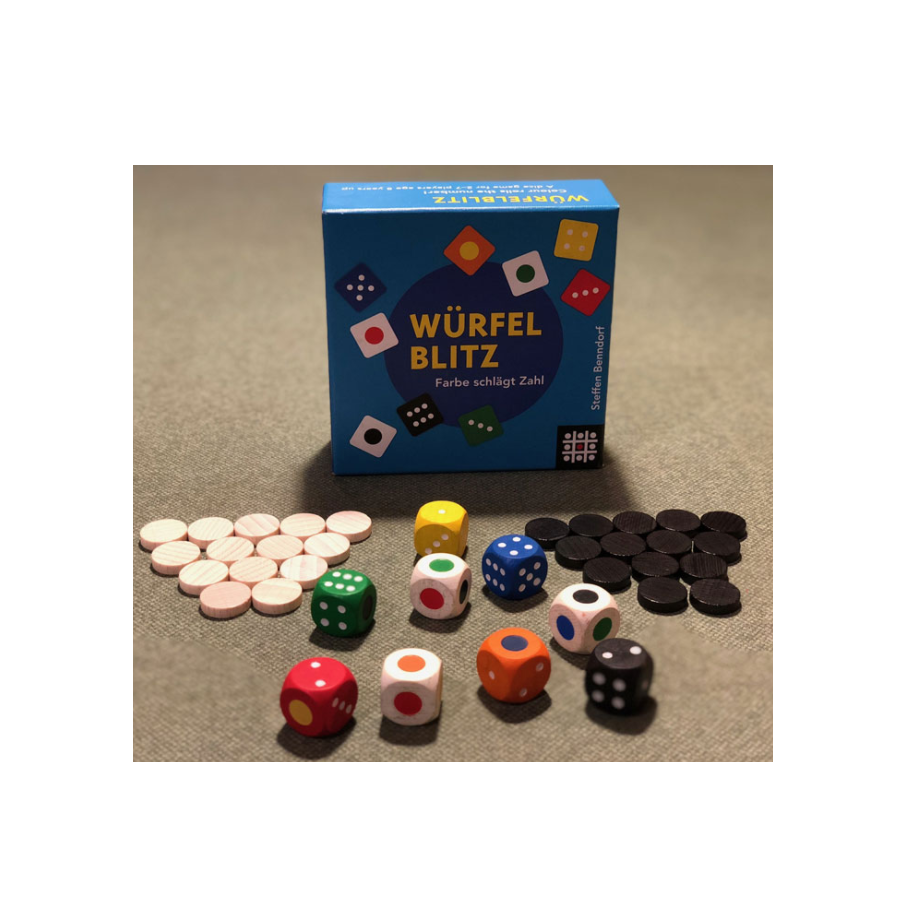 Würfelblitz er et hurtigt terningspil, hvor du skal være hurtig til at genkende, hvilke tal der tæller, og hvilke tal der er blokeret af farver.