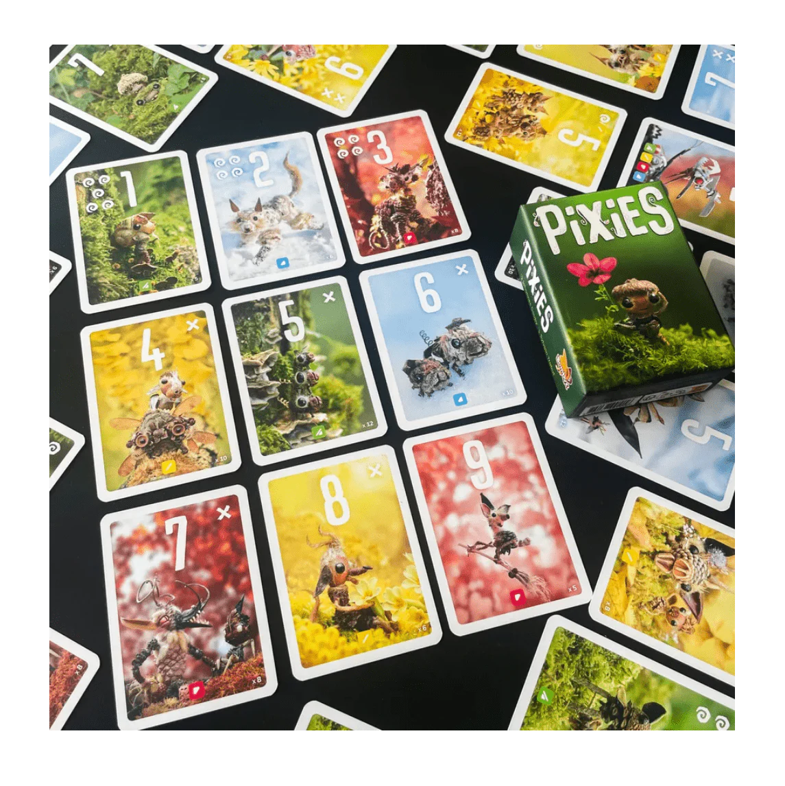 I Pixies bevæger du dig gennem årstiderne for at møde små væsner, der dukker op fra en blomst eller søger ly i et træhul. Vælg et af de afslørede kort, men vær forsigtig med, hvilke du efterlader til dine modstandere!
