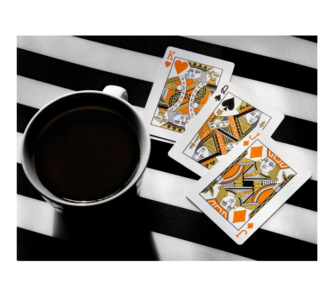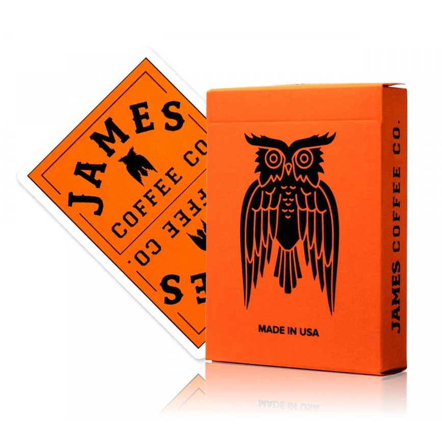Denne orange og sorte udgave af James Coffee Co.-kort blev trykt eksklusivt til Art of Play Variety Box. Vi er begejstrede for at have kunnet bringe disse kort til vores butik og tilbyde dem til dig.